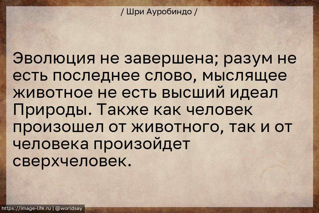 Эволюция не завершена; разум не есть последнее слово, мыслящее животное не есть высший идеал Природы. Также как человек произошел от животного, так и от человека произойдет сверхчеловек.