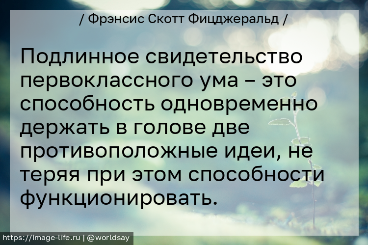 Подлинное свидетельство первоклассного ума – это способность одновременно держать в голове две противоположные идеи, не теряя при этом способности функционировать.