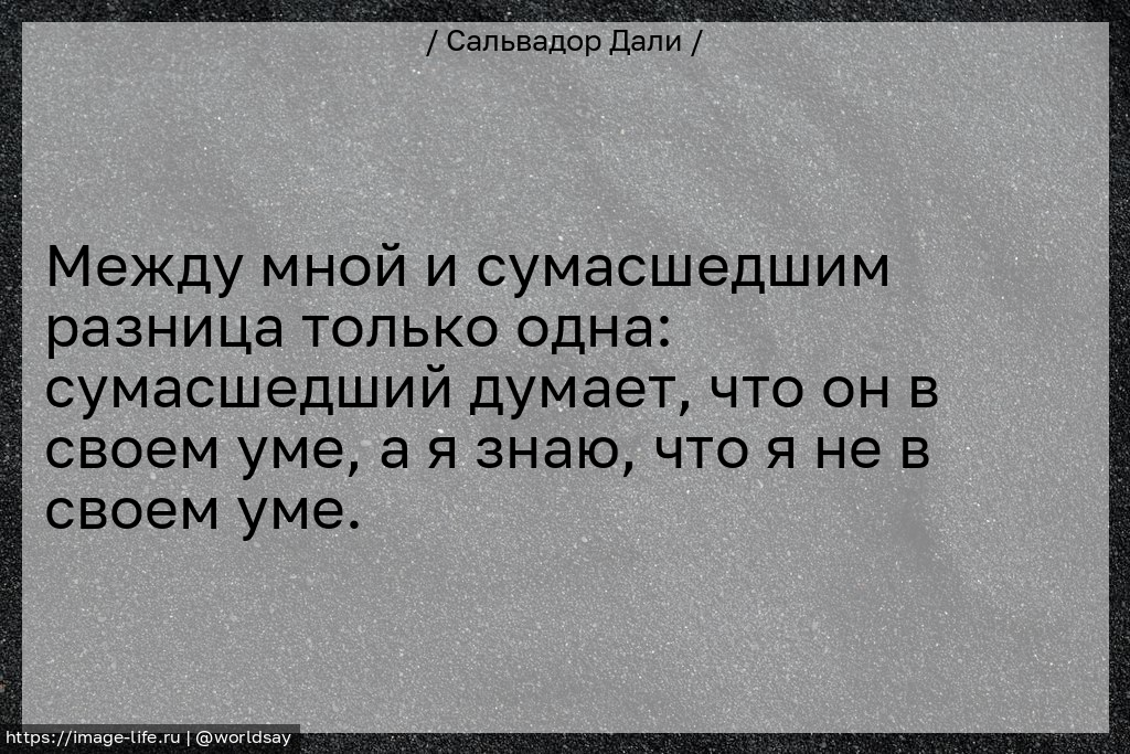 Между мной и сумасшедшим разница только одна: сумасшедший думает, что он в своем уме, а я знаю, что я не в своем уме.