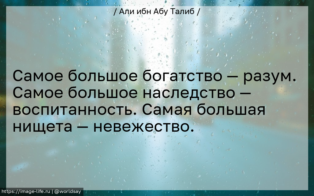 Самое большое богатство — разум. Самое большое наследство — воспитанность. Самая большая нищета — невежество.
