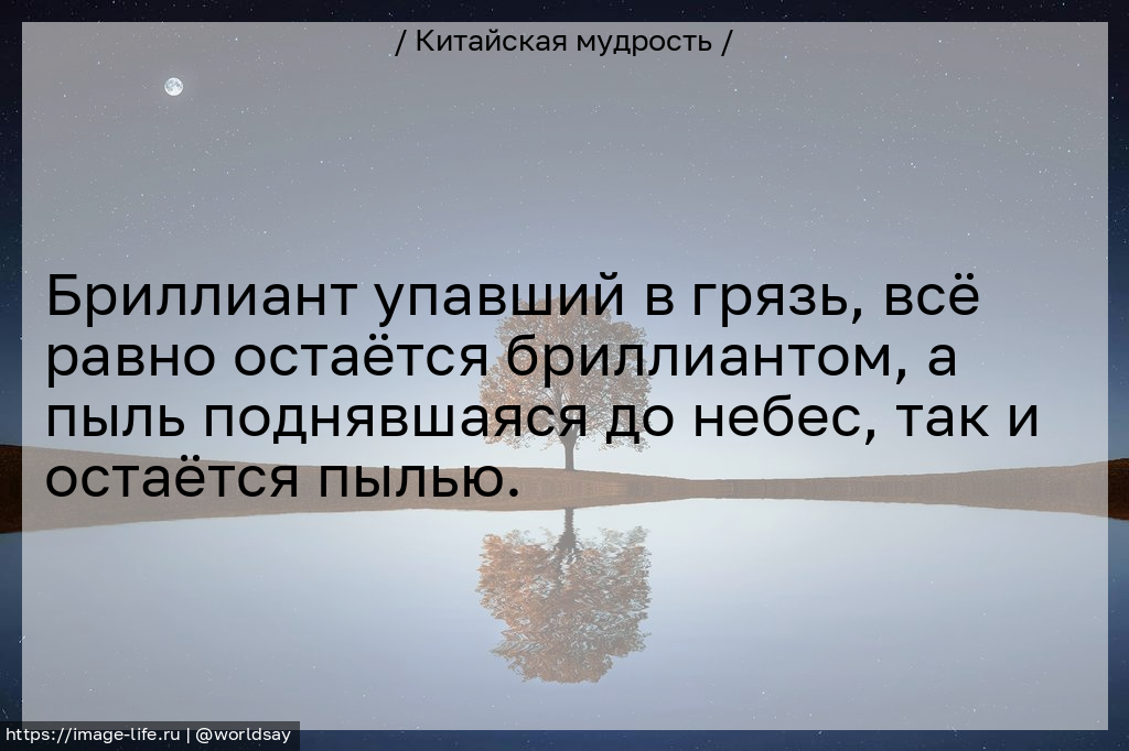 Бриллиант упавший в грязь, всё равно остаётся бриллиантом, а пыль поднявшаяся до небес, так и остаётся пылью.