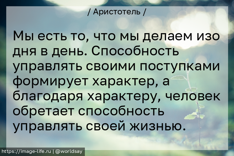 Мы есть то, что мы делаем изо дня в день. Способность управлять своими поступками формирует характер, а благодаря характеру, человек обретает способность управлять своей жизнью.