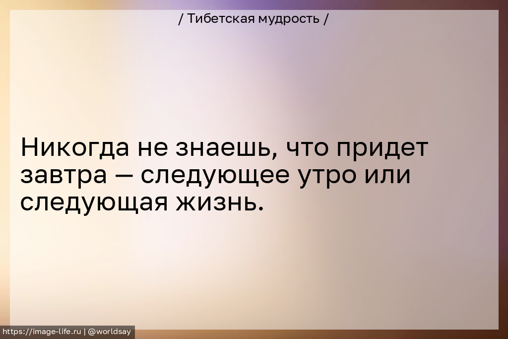 Никогда не знаешь, что придет завтра — следующее утро или следующая жизнь.