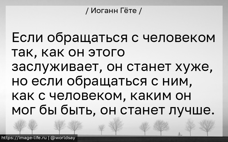 Если обращаться с человеком так, как он этого заслуживает, он станет хуже, но если обращаться с ним, как с человеком, каким он мог бы быть, он станет лучше.