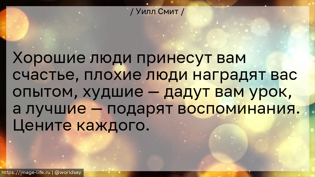 Хорошие люди принесут вам счастье, плохие люди наградят вас опытом, худшие — дадут вам урок, а лучшие — подарят воспоминания. Цените каждого.