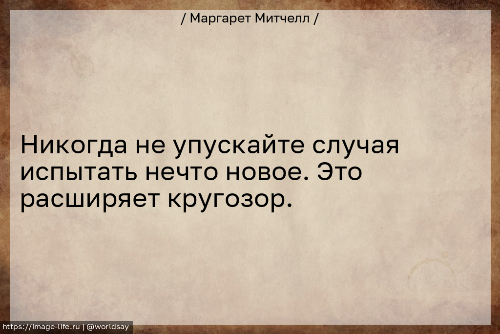 Никогда не упускайте случая испытать нечто новое. Это расширяет кругозор.