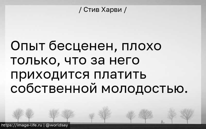 Опыт бесценен, плохо только, что за него приходится платить собственной молодостью.