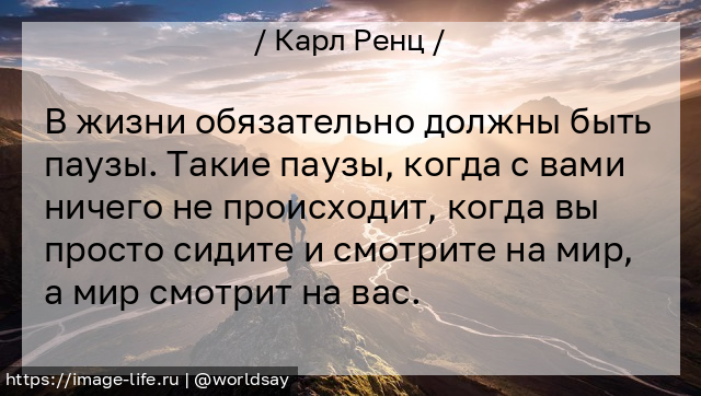 В жизни обязательно должны быть паузы. Такие паузы, когда с вами ничего не происходит, когда вы просто сидите и смотрите на мир, а мир смотрит на вас.