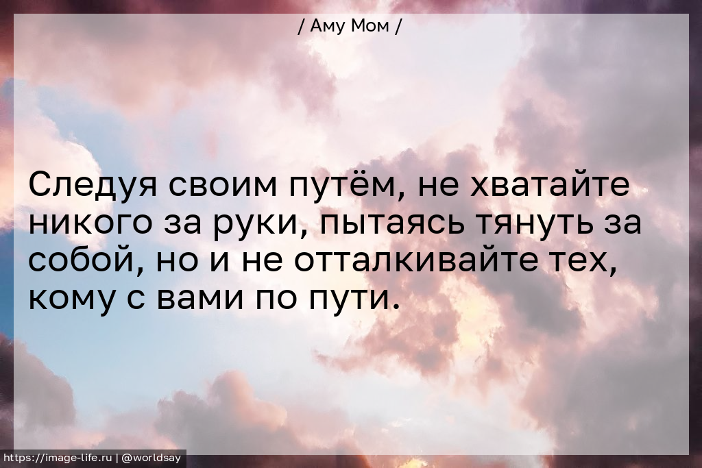 Следуя своим путём, не хватайте никого за руки, пытаясь тянуть за собой, но и не отталкивайте тех, кому с вами по пути.