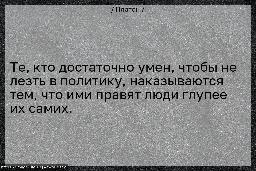 Те, кто достаточно умен, чтобы не лезть в политику, наказываются тем, что ими правят люди глупее их самих.
