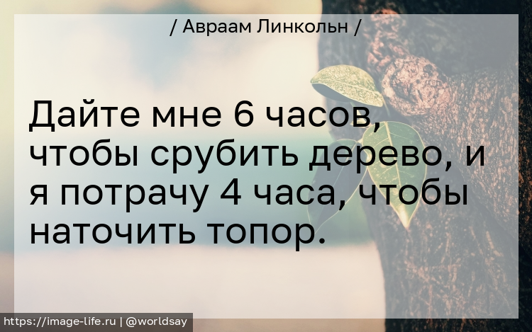 Дайте мне 6 часов, чтобы срубить дерево, и я потрачу 4 часа, чтобы наточить топор.