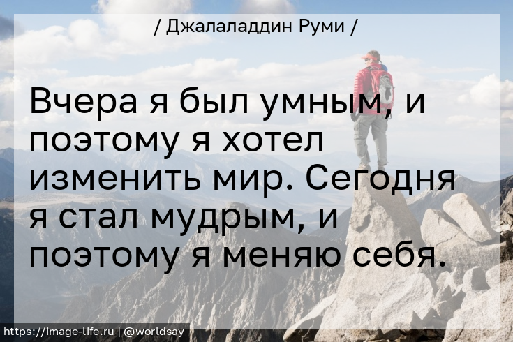 Вчера я был умным, и поэтому я хотел изменить мир. Сегодня я стал мудрым, и поэтому я меняю себя.