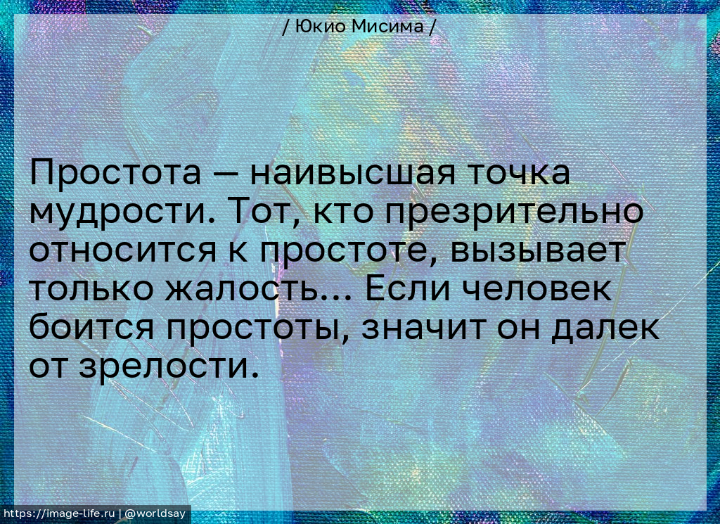 Простота — наивысшая точка мудрости. Тот, кто презрительно относится к простоте, вызывает только жалость… Если человек боится простоты, значит он далек от зрелости.
