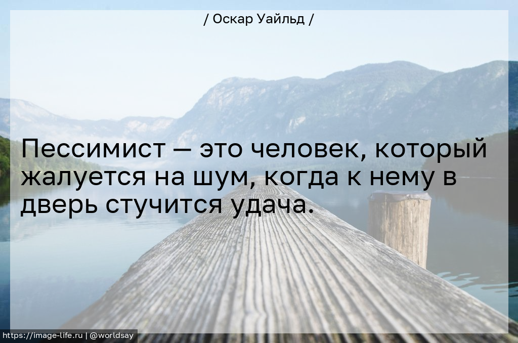 Пессимист — это человек, который жалуется на шум, когда к нему в дверь стучится удача.