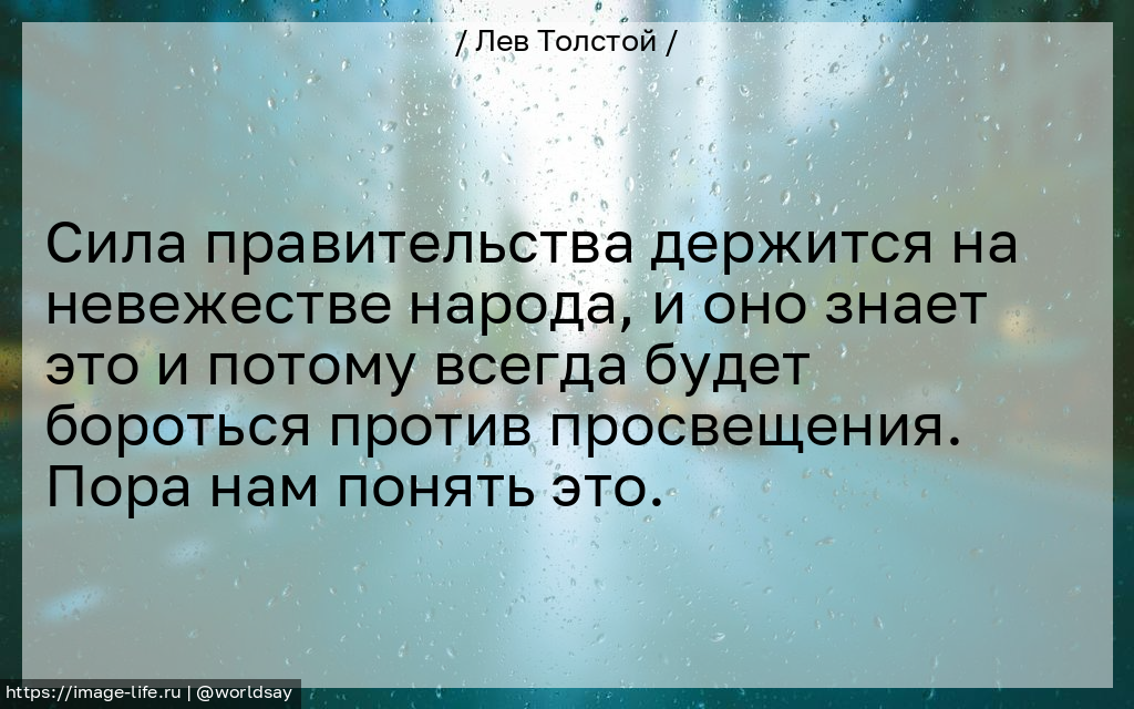 Сила правительства держится на невежестве народа, и оно знает это и потому всегда будет бороться против просвещения. Пора нам понять это.