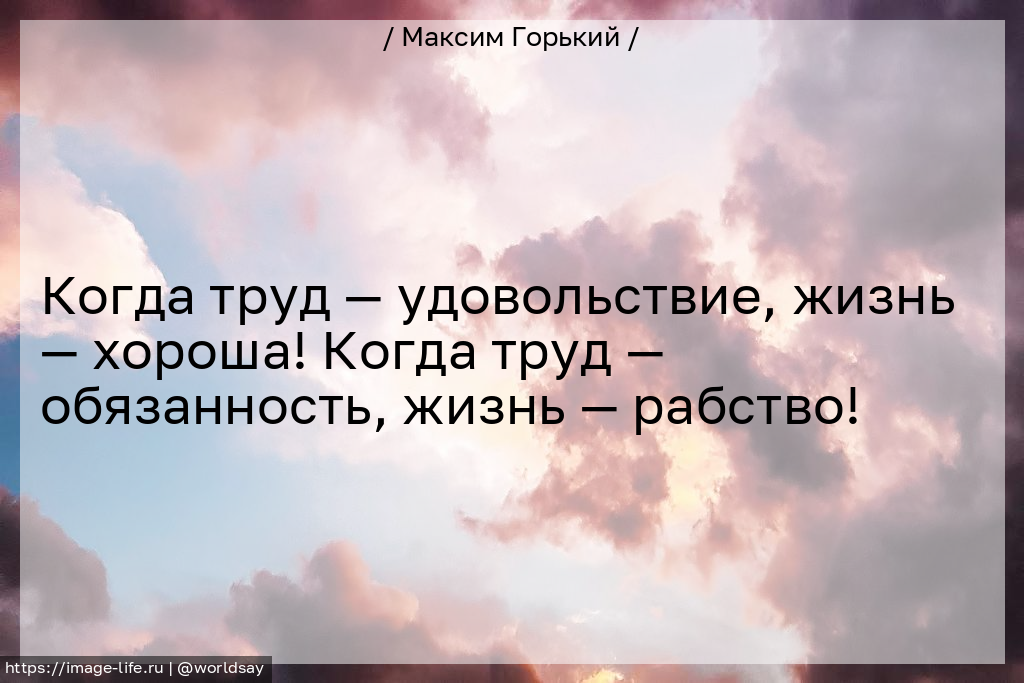 Когда труд — удовольствие, жизнь — хороша! Когда труд — обязанность, жизнь — рабство!