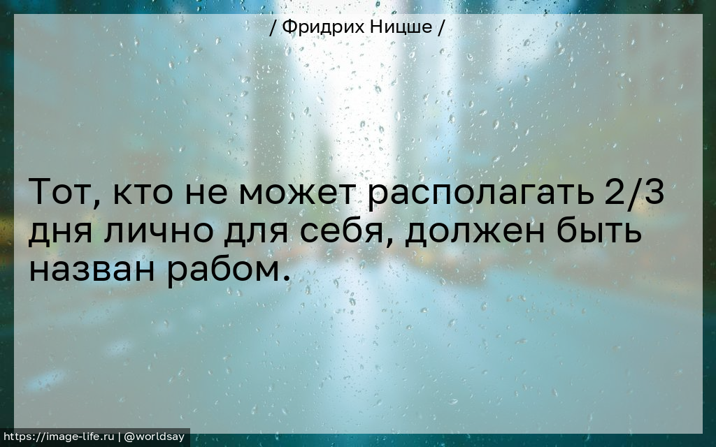 Тот, кто не может располагать 2/3 дня лично для себя, должен быть назван рабом.
