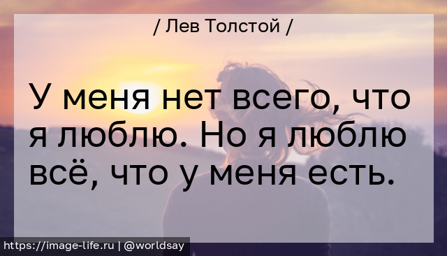 У меня нет всего, что я люблю. Но я люблю всё, что у меня есть.