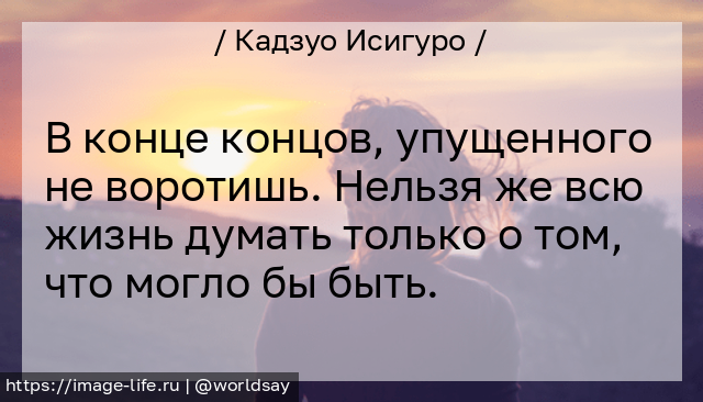 В конце концов, упущенного не воротишь. Нельзя же всю жизнь думать только о том, что могло бы быть.