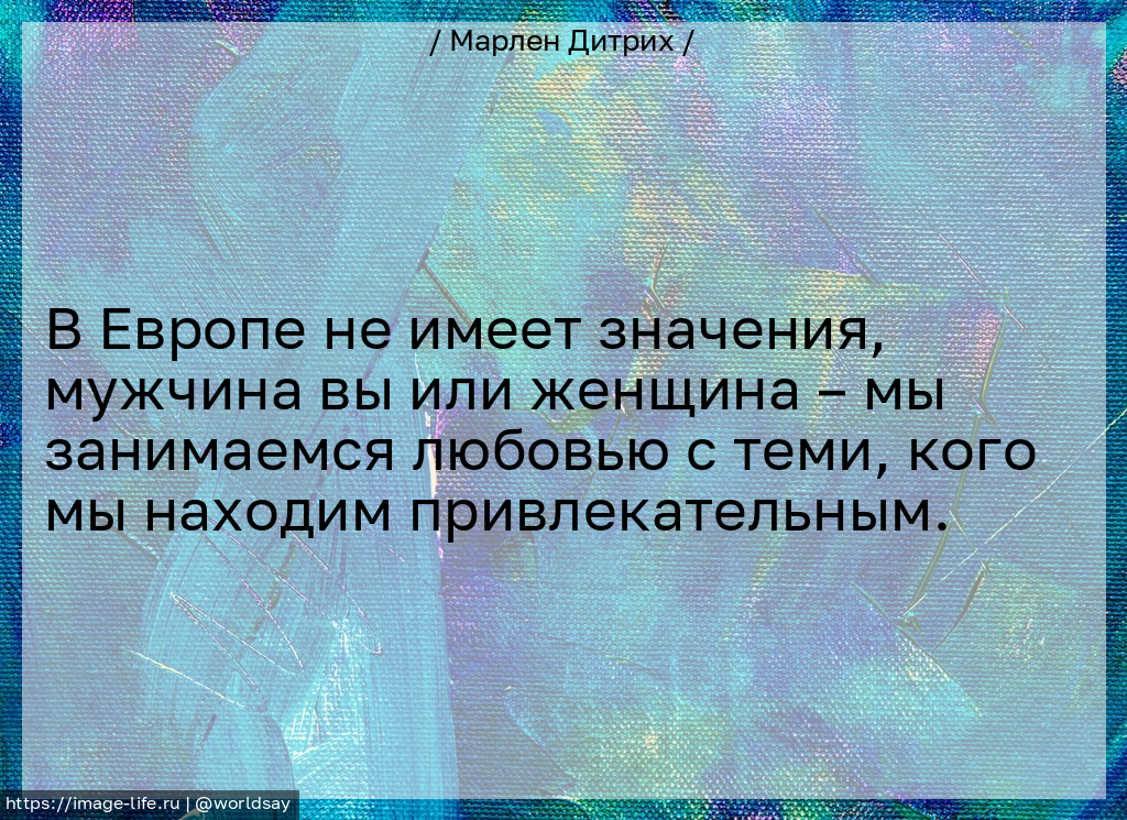 В Европе не имеет значения, мужчина вы или женщина – мы занимаемся любовью с теми, кого мы находим привлекательным.