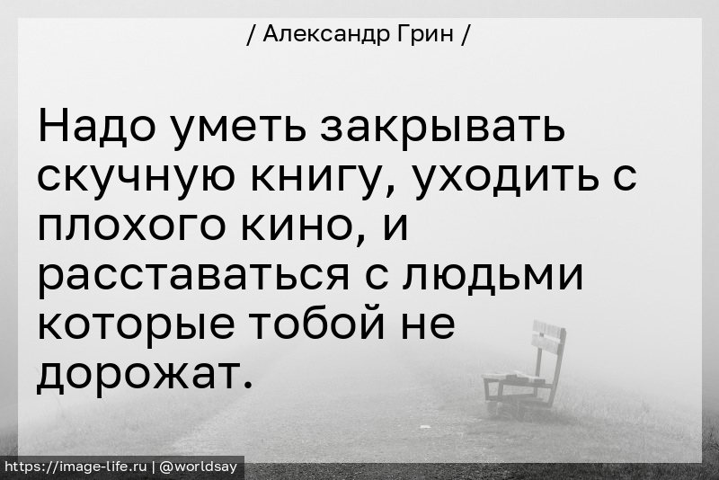 Надо уметь закрывать скучную книгу, уходить с плохого кино, и расставаться с людьми которые тобой не дорожат.