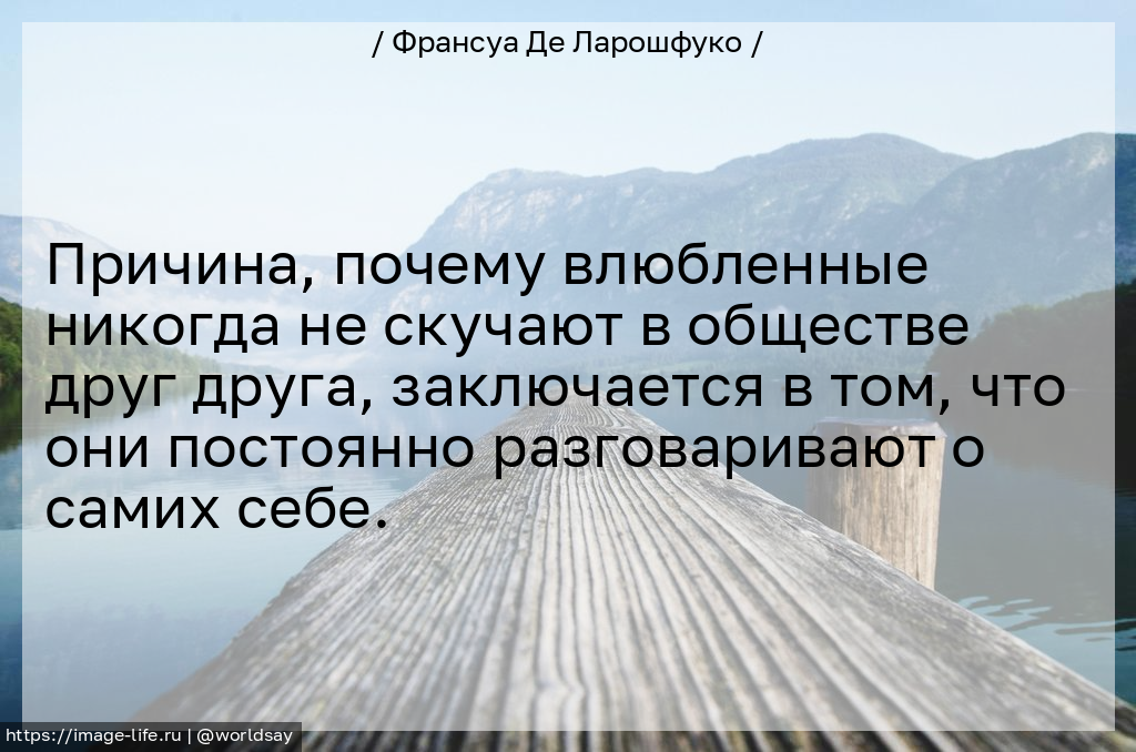 Причина, почему влюбленные никогда не скучают в обществе друг друга, заключается в том, что они постоянно разговаривают о самих себе.