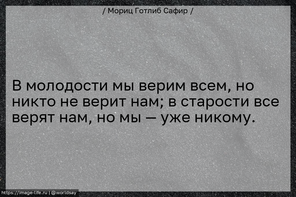 В молодости мы верим всем, но никто не верит нам; в старости все верят нам, но мы — уже никому.