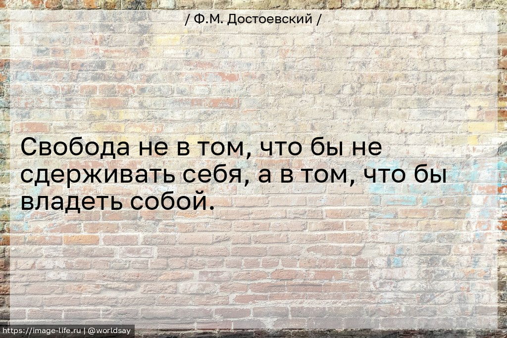 Свобода не в том, что бы не сдерживать себя, а в том, что бы владеть собой.