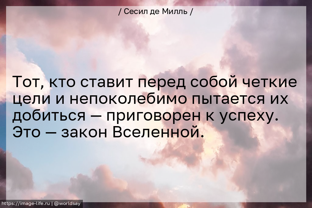 Тот, кто ставит перед собой четкие цели и непоколебимо пытается их добиться — приговорен к успеху. Это — закон Вселенной.