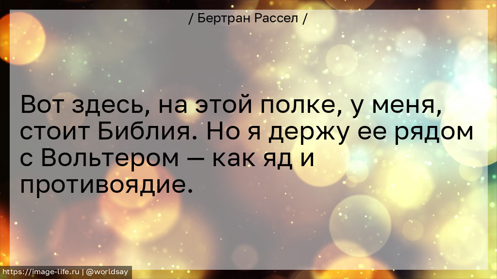 Вот здесь, на этой полке, у меня, стоит Библия. Но я держу ее рядом с Вольтером — как яд и противоядие.