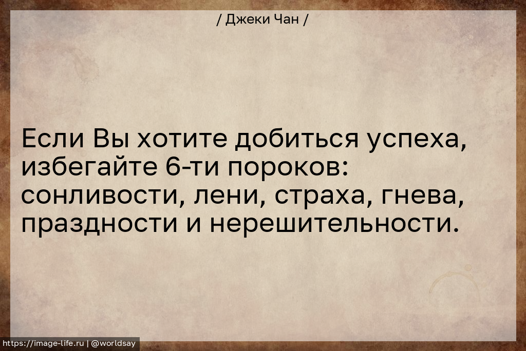Если Вы хотите добиться успеха, избегайте 6-ти пороков: сонливости, лени, страха, гнева, праздности и нерешительности.