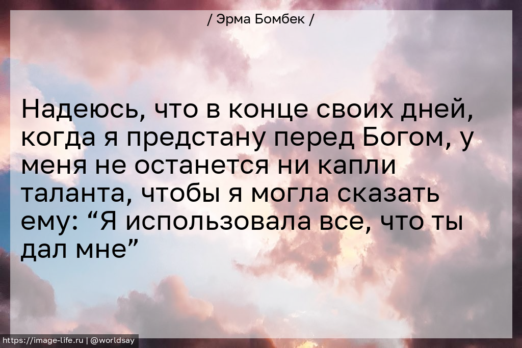 Надеюсь, что в конце своих дней, когда я предстану перед Богом, у меня не останется ни капли таланта, чтобы я могла сказать ему: “Я использовала все, что ты дал мне”