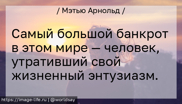Самый большой банкрот в этом мире — человек, утративший свой жизненный энтузиазм.
