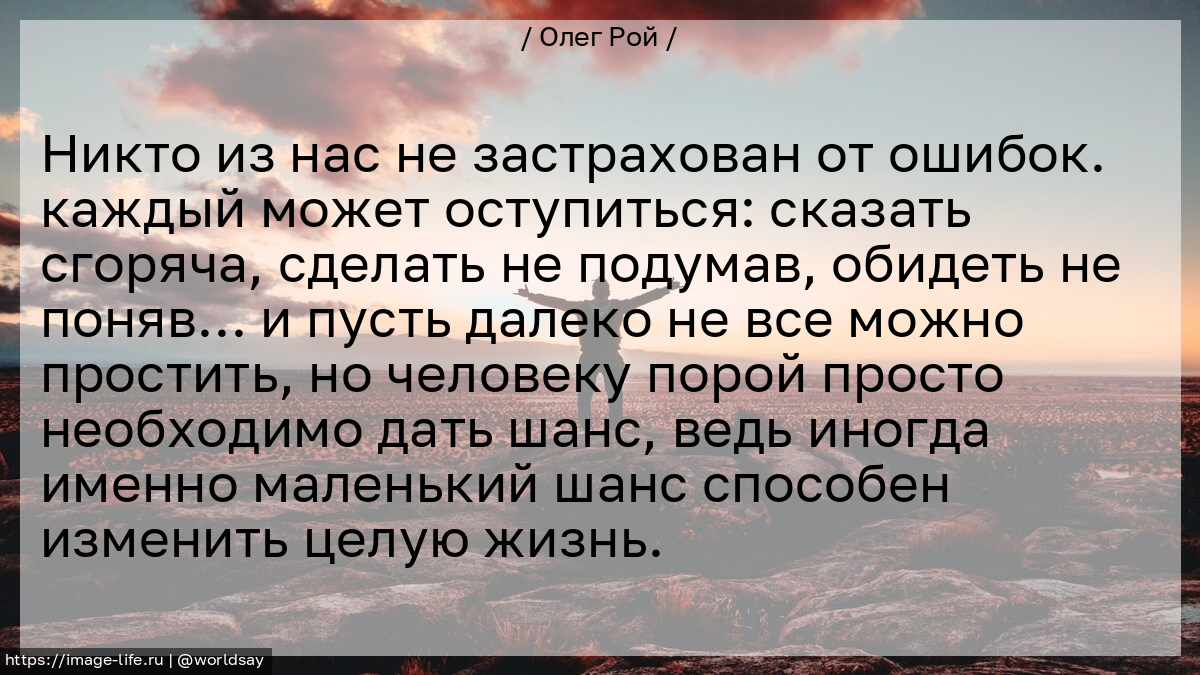 Никто из нас не застрахован от ошибок. каждый может оступиться: сказать сгоряча, сделать не подумав, обидеть не поняв… и пусть далеко не все можно простить, но человеку порой просто необходимо дать шанс, ведь иногда именно маленький шанс способен изменить целую жизнь.