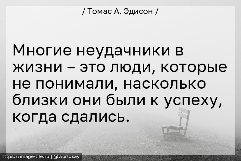 Многие неудачники в жизни – это люди, которые не понимали, насколько близки они были к успеху, когда сдались.
