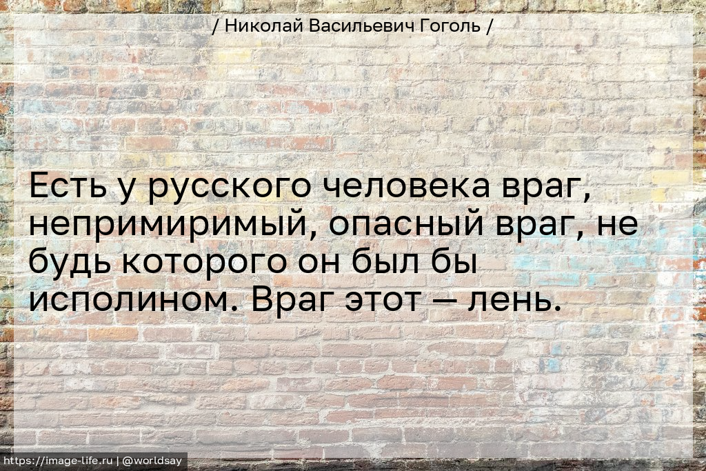 Есть у русского человека враг, непримиримый, опасный враг, не будь которого он был бы исполином. Враг этот — лень.