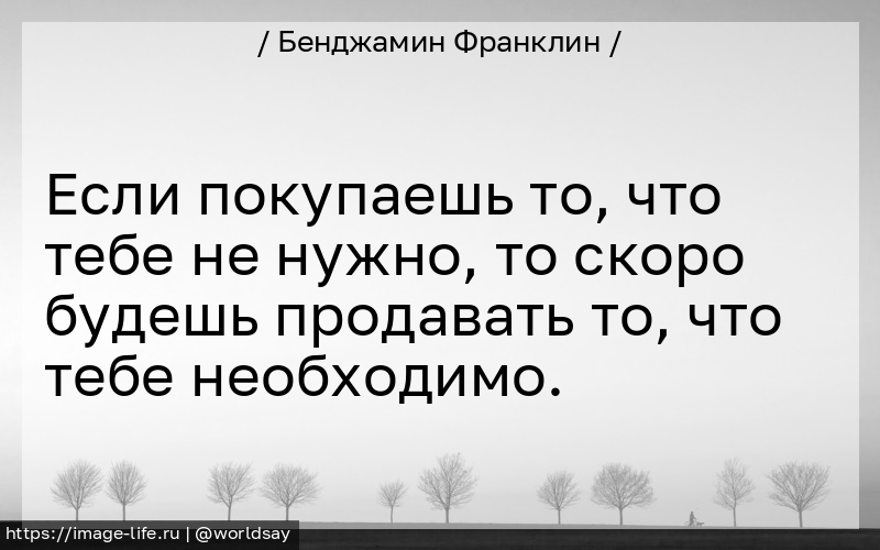 Если покупаешь то, что тебе не нужно, то скоро будешь продавать то, что тебе необходимо.