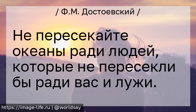 Не пересекайте океаны ради людей, которые не пересекли бы ради вас и лужи.