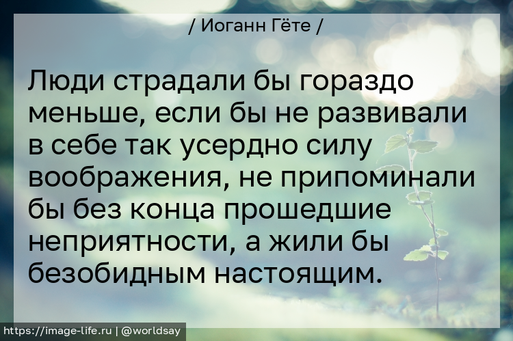 Люди страдали бы гораздо меньше, если бы не развивали в себе так усердно силу воображения, не припоминали бы без конца прошедшие неприятности, а жили бы безобидным настоящим.