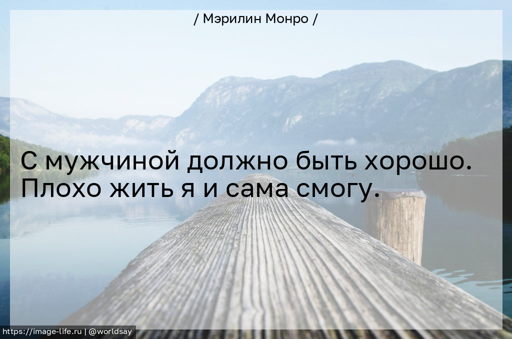 С мужчиной должно быть хорошо. Плохо жить я и сама смогу.