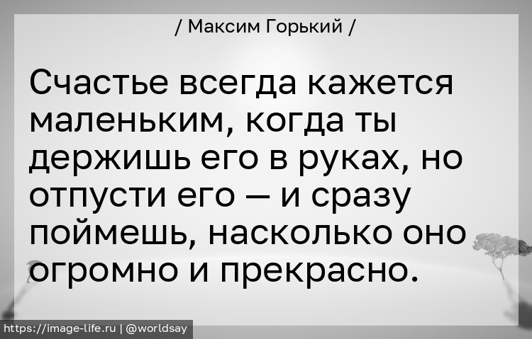 Счастье всегда кажется маленьким, когда ты держишь его в руках, но отпусти его — и сразу поймешь, насколько оно огромно и прекрасно.