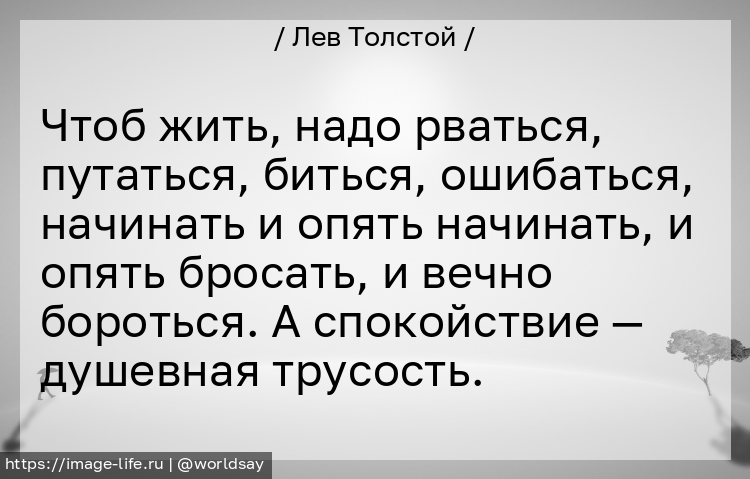 Чтоб жить, надо рваться, путаться, биться, ошибаться, начинать и опять начинать, и опять бросать, и вечно бороться. А спокойствие — душевная трусость.