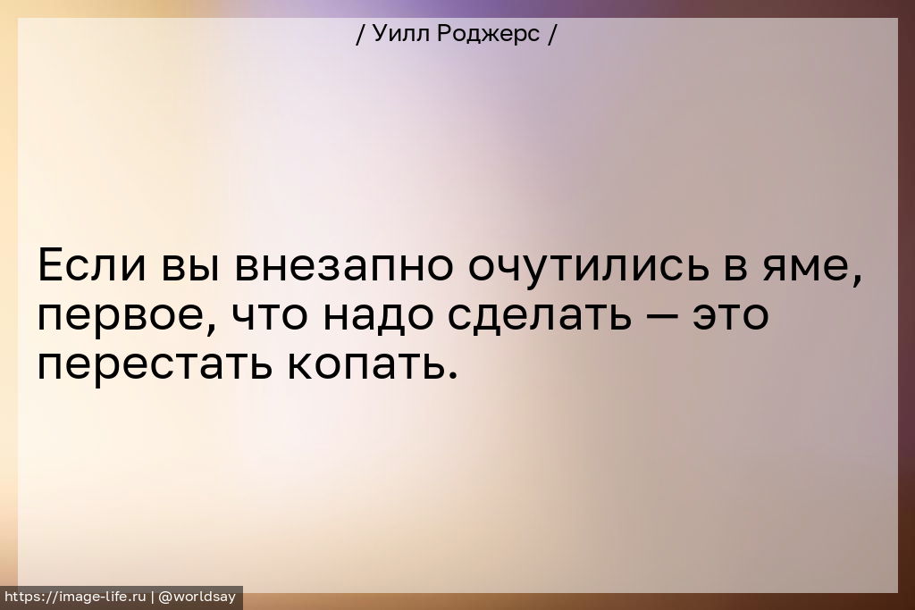 Если вы внезапно очутились в яме, первое, что надо сделать — это перестать копать.