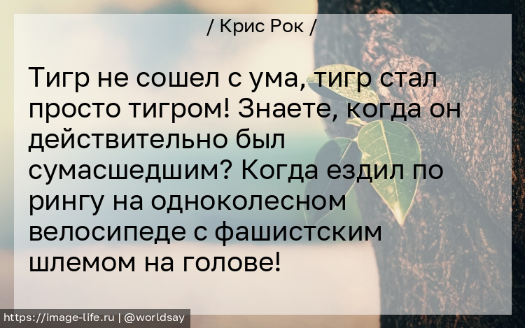 Тигр не сошел с ума, тигр стал просто тигром! Знаете, когда он действительно был сумасшедшим? Когда ездил по рингу на одноколесном велосипеде с фашистским шлемом на голове!