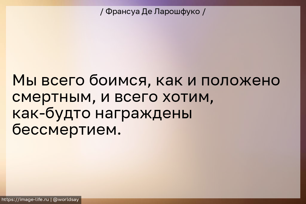 Мы всего боимся, как и положено смертным, и всего хотим, как-будто награждены бессмертием.