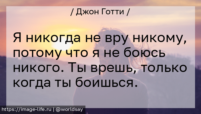 Я никогда не вру никому, потому что я не боюсь никого. Ты врешь, только когда ты боишься.