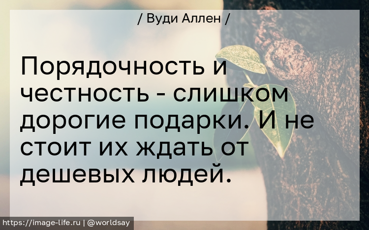 Порядочность и честность - слишком дорогие подарки. И не стоит их ждать от дешевых людей.