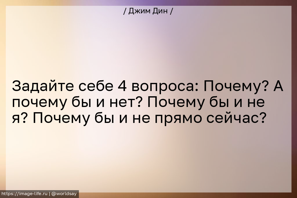 Задайте себе 4 вопроса: Почему? А почему бы и нет? Почему бы и не я? Почему бы и не прямо сейчас?