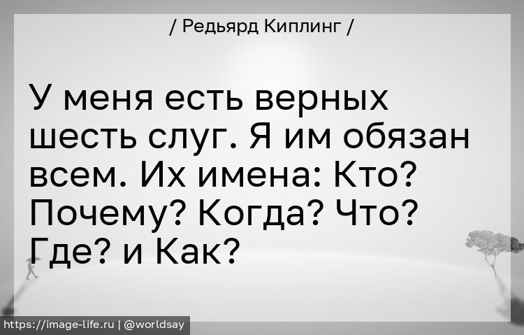 У меня есть верных шесть слуг. Я им обязан всем. Их имена: Кто? Почему? Когда? Что? Где? и Как?