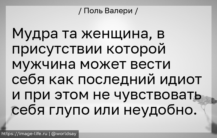 Мудра та женщина, в присутствии которой мужчина может вести себя как последний идиот и при этом не чувствовать себя глупо или неудобно.